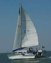 I didn't wait for the third incident to make a disaster. I don't know what happened to the boat or the crew, they probably got home OK as there was nothing in the news about a missing boat, but I am glad I didn't take the risk. I went on to sail a similar boat back across the bay after a week of waiting for the weather at Cape Finisterre to improve. Every day we took the long walk up to Fisterra Lighthouse to check the incoming weather. In the end it didn't improve so we left anyway and suffered the first 30-40 miles of rough conditions. When I got back to England this adventure confirmed my opinion that a catamaran was much more stable than a heeled over monohull and happy that I had made the right choice.