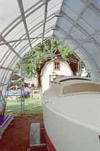 - As the boat is 25’x 8’ the structure needs to be approximately 32’x 14’.
