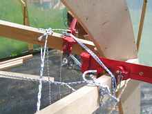 Always keep an eye on the safety aspect of the job. This rope round the sash cramps will prevent an accident if the windlass breaks. |