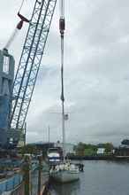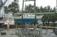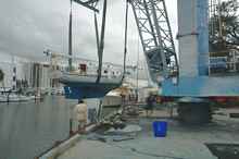 With the mast securely tied to the cradle and bow pulpit it was time to haul Valora. I never feel good when Valora is in the slings. Even during the survey when she really wasn't mine I was uncomfortable. The boat is most vulnerable while she is being hauled. She knows it and so do I.