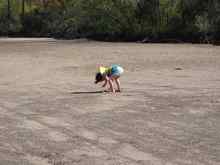 Freshwater bivalves tend to have rather rubbery meat, so this one was "rescued" to the ankle-deep water.