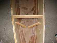 I probably could have removed the temporary frame at this point, but I decided it was safer to add the exterior glass first. ('m glad I did, because the gunwales did spring in noticeably when I removed the form.)