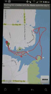 Fortunately, I’m not what you’d call a GPS “power user”. I sail within sight of land, so I don’t really need charting ability while I’m on the water. My GPS is basically a speedometer that also allows me to easily share a map of exactly where I went. (This is a huge step forward from trying to puzzle positions on the water by attempting to take bearings on known points, which is a giant pain in a small boat). The GPS map approach also lets me measure on-screen the angles I’m able to tack through when sailing. I consider it pretty advanced to use the tracks to figure out how fast I was able to get where I was going!