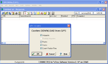 Once you’ve downloaded and installed the program, you need to get it talking to your GPS. To do this, first select the appropriate receiver under “GPS – Setup”, then select “GPS – Download All”.