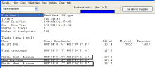 GPS Utility includes some cool reporting features as well. First, I like to change the units of measurement from meters to statute miles. This can be changed under “Options – Data Set”, and unfortunately needs to be done each time you open the software. (This may have been fixed, as I do not have the most current version.) Then we can view a table of the track data by clicking the button with a blue trail and red markers, or typing “Ctrl+T”.