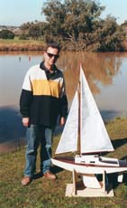 Interesting is that Andy McGarrity in Britain chose to build a sail-aboard replica 88” in length while my friend Ron (Innovator) Rule of the Auckland Ancient Mariners developed an enthusiasm to effect change in the design and the result was that many Starlets that were not quite true Starlets to the original plans started to appear. Well, some might argue that Vic’s design was never stated to be a `one design’. I corresponded with Vic for several years and gave him a complimentary subscription yearly to my magazine Windling World which he said he always enjoyed and read from cover to cover. It was he who sent me the photograph of himself  with the original Starlet which he had retained.