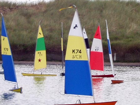 They were originally designed and built at the Fleetwood club in the 1980’s and were the forerunners to the Lasers. they lost favour to some extent when the single sail Laser model yachts came into vogue, but I am told that a few are still sailed at other clubs in Britain.