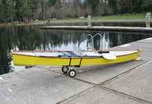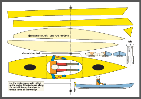 The EMC with the Electric Paddle® will be controlled by regular, movable kayak rudder peddles; and will also be designed to accept a standard rudder setup if you want to paddle the hull instead.  Build two of the hulls, and you can go sailing, or build a low sided outrigger, and take the dog along too.