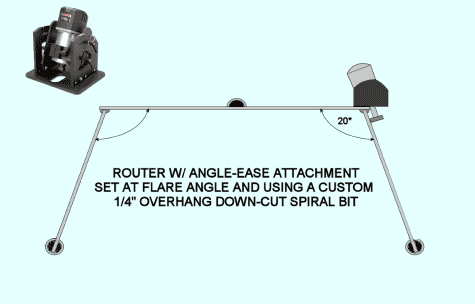 Lagniappe has a constant flare angle; so after welding and rough trimming with the plasma cutter, I will use my Angle-Ease router accessory and an oversized bearing on the bit to trim the bottom plating to ¼” from the sides.