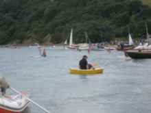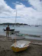 The little dinghy was designed to tow dry and lightly, and in the boisterous conditions of that first day, and the storm conditions that I encountered on two of the other days she performed extremely well. I had occasion to carry a passenger on two occasions, found her easy to get in and out of when boarding my mothership, found that she rowed well even in waves somewhat higher than her sides and that she sat back on the end of her towrope staying dry and straight even in very poor weather. Lots of people tried her out, all laughed when they saw her, and all who got afloat in her were impressed. She gets smiles wherever she goes, and like a very cute child seems to capture even hardened hearts.