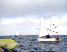 (Steve Isaac), who runs WaterTribe, has clarified the reefing rule for future WaterTribe events. Under the old rule, a traditional sloop rig could be considered to meet the reefing requirement with one reef in the main and by lowering the jib. The clarification specifies there must be at least two reefs in the main and the jib must be able to be fully furled or lowered without going on the foredeck. For cat ketches like the Sea Pearl and Core Sounds, both the main and mizzen must have double reefs. (It's worth noting that Sea Pearls have infinite roller reefing on both sails and I've not seen a Core Sound that didn't have double reefs on both sails, and some can step a single mast in the center of the boat for further reductions. I think that's a big reason both types have outstanding records in the EC.) Boats with small or tiny mizzens like Oaracle may be exempted from the mizzen reefs, or if the sail is big enough may have to have one reef. For reasons too numerous to list here, these rules are sensible and should be considered the minimum for EC entrants. Think of it like this. Imagine you were going on a long bike ride and the route included both gentle and steep hills and long, flat sections. Would you take a single speed bike? A three-speed? Or one with as many speeds as you could get? Okay, you can't have 21 reefing combinations (well, you can on a Sea Pearl) but you get the point. The more reefing flexibility you have, the more conditions you can cope with. As the above account notes, Oaracle has three reefs on her main plus a small mizzen. We used all three reefs and once the mizzen alone, and never once felt overwhelmed or in danger because of the wind. The one close call we had was because of waves.