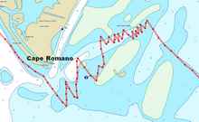 Just before 1 a. m., we passed Caxambas Pass on the south end of the condo-lined Marco Island, and civilization ended. The wind eased slightly and we headed in the moonlight for Cape Romano. Around 2:15 a. m. we arrived, and the easy sailing was over.
