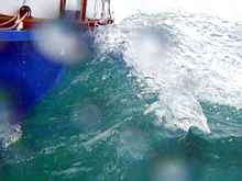 Oaracle cuts through one of the endless waves as we go around Florida Bay.