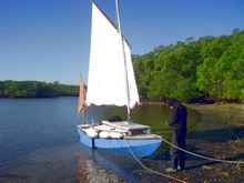 Not a great picture, but Neil Calore (LeatherLungs) works on his CLC dory on the beach at Ft. Desoto. His was the only other Class 4 boat to finish the Everglades Challenge.
