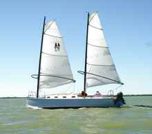 John and I had a quick breakfast and decided to try sailing with only the mizzen, which is all of about 13 square feet. It would be a downwind run in the strong northerlies. There were plenty of spoil islands to duck behind if problems arose.
