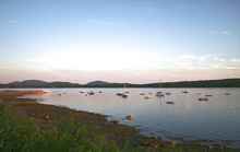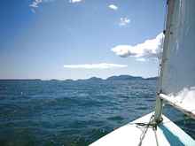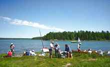 Saturday, the forecast was for modest winds, but as soon as we were in the water, the winds began to pick up. We sailed to Bean Island, had lunch and made plans to explore Young's Bay on the way back. However, the wind continued to build to 15+ knots and each Skipper decided to keep heading for Lamoine, with most under full sail. It was a spectacular run! What a way to end three days of sailing! Lobster dinner was awaiting us upon our return. After we arrived at Lamoine, most boats that came in were beached to await trailering. After about two hours, most of the boats that were not moored for the night had been pulled out of the water on their trailer and set in the trailer yard for pick-up. It was a marvelous choreography to watch and in which to participate (I took several turns cranking the winch). Afterwards, the lobsters were definitely calling us. |