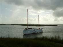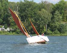| Terrapin happens to incorporate good course-keeping abilities because she has a clean underbody and two sails on two unstayed masts. |