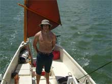 A month passed. I was out daysailing on one of those perfectly shimmering days when there is plenty of sun but enough clouds for some cool in the air, and the breeze is 8 knots and steady. I began working the boards and sails more or less at random, and found that the boat was holding a course on a point of sail where I had not previously gotten her to balance. I chocked the helm amidships and began experimenting. The results got better and better. Immediately the next few days, I spent all my sailing time putting her through paces: more sheet, less sheet, main close-hauled, mizzen large, board down, halfway up, no board at all. Luckily the pleasant weather held throughout. Unlike John Letcher, I was not a thousand miles at sea, but I think I was as successful in as little time.
