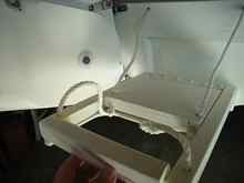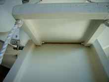 2. The small frame which is the top step, is also 6mm ply with solid framing that is sufficiently smaller than main frame timbers to allow this step to lie flush inside the main frame when folded. It is hinged to the main frame by a couple of through-bolts. These bolts are really only there for the step to pivot & to locate it at the top of the main frame as it will be held hard in place when you put weight on the ladder. Put a radius on the top corners of the side framing so they will pivot.