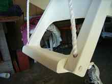 As each transom is different, the method of attachment will have to suit its shape in order for the folded ladder to sit flush or as near to flush as possible as the rope will be between the two. I just pull the knots through a little and the thickness of the rope makes little difference. How you make your attachment will be dictated by its shape and size. Ladybug has a very low transom/splashwell with a thickish motor clamping board at the top, so I glued & through-bolted a block as low as possible, that would be thick enough to let the ladder sit flush with the clamping board when folded.