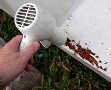 Next, I use a drill to punch a series of closely spaced holes on the affected area. You should be able to feel the damaged wood. I try to drill holes right to the border of the infected area and a little over into good wood. Try not go drill through the wood, which can be a little tricky when, like the Piccup, the hull is made from ¼-inch ply. In this case, the affected area is backed by the rubrail, so there's little worry about going too deep. If you do go through an unbacked area, cover the bottom side with tape so the eventually applied epoxy won't drip through. As the picture shows, much of the top layer of the ply will simply flake off. Don't worry about that.