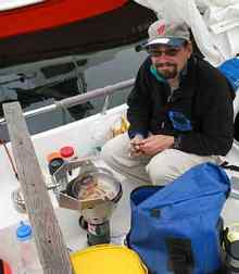 | Skipper Bill McClure's cooking on Seacook stove. Photo credit: Derek Jensen |