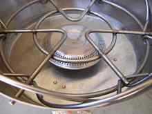 The Mini-Galley is a perfect size for a micro-cruiser like the West Wight Potter 15. However, the method of construction of the stove limits any repairs that an owner might be able to make. All components, other than the fuel control valve, are welded or riveted in place. In addition, the stove's basket style construction does limit the size and style of pots and pans that can be used with the stove. To use the stove a person must lower a pot down into the basket like structure, or slide the small fry pan into the basket.