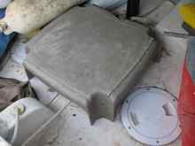 On the inside of the cuddy cabin I added some harness staples to use as attachment points for straps to secure some items that I didn't want to bounce around. The last item I made was a cover to protect the centerboard control lines from everything being stored in the cuddy cabin. The last thing I wanted to occur while on the trip was for equipment or provisions to cause the control lines to jam. A cover also allowed us to not lose much needed storage room in the cuddy cabin. To make the cover I bought a small plastic foot stool from Home Depot. I cut the legs down enough to cover the control lines. I drilled a couple holes in it to tie lines to hold it in place.