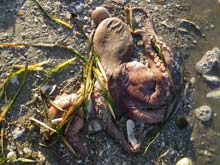 Sammy found a large octopus washed up on the beach, which was very interesting and unusual to see.