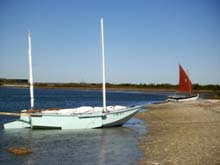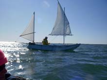 • Stan Roberts soloing aboard Spartan, a 15 ft. Jim Michalak designed and self built Family Skiff.