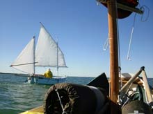 • Chris Tomsett and Cathy Wright crewed on Otter, a John Welsford designed Sherpa stretched to 11 feet, with a geriatric wiener dog named Major barking out orders.