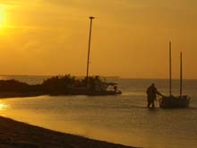 As we approached Mustang Island we saw a large (30-35 ft.) sailboat that was anchored close to shore. Speaking of boats passing in the night, if we had talked to them, we would have learned that Stan and Pehr were just ahead of us, heading East/Northeast along the shore in an attempt to intercept our course. Our boats possibly passed within a couple hundred yards of each other without ever seeing or hearing the other.  When we came abreast of the anchored sailboat, we turned south to run parallel down the shoreline, hoping to see Stan and Pehr. We swept the beach with our flashlight, hoping they would see us and signal their location, but they did not. We tried to reach them on the Vhf radio as well, but did not receive a reply. Pehr also tried to reach us, but he too failed to make contact.  We went about a mile down the shore to Shamrock Island and, after wading the boat across a sand bar, tucked ourselves into a nice little cove for the night. Chris pulled Otter up on the small shingle and set out the anchor as insurance against rising tides. Major though was not satisfied and so dug the anchor back up and barked his orders at Chris to reset the thing properly. We were thinking this cove might be a good overnight stop for the Texas200, but a sign indicated no trespassing during the months of February through August as it is a bird nesting ground during those months.