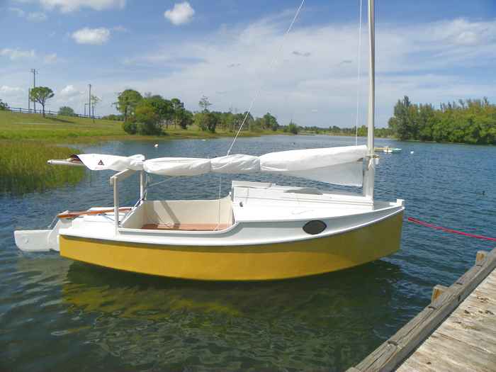 First words out of her mouth was, If it is going to have that stupid lee board you'll never see me in it. I knew she meant it. I didn't like the lee board look either and set out to design some sort of centerboard. Nothing I could come up with worked with the balance of the sail and the bulkhead arrangement. I had liked what I saw in one of Paul Fisher's designs called Ptarmigan 15. So I shot an email to him and he sent me back a brochure of the boat that showed a picture of someone that had built the boat using bilge keels. I liked the thought but they seemed to deep for my shallow south Florida water so I kept thinking and looking. I'm not sure how I connected with Bob Throne on the twin keel idea, I think I asked for Ideas on the Michalak group, but his process of shallow keels he had used on 'Wanderer' seemed like the cats meow for a cat boat.