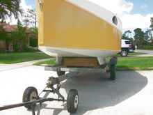 I was ready for the FL 120. When I arrived the evening before the event in Pensacola, Fl. the raging storm sort of made me rethink what in the heck I was doing. I put the boat in early that morning and took off for the first meeting point. It was a little bit of a close-hauled tack but the boat did great. I made it to the island that we were going to camp at about the middle of the pack and had several people come up and talk to me about the boat. I think if people wanted to use this system on thinner boats it would even work better. The Fat Cat design is 15ft. long and 6 ft. wide. I have a queen size mattress in the stateroom.