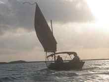 Gamaray had both reefs in by this time and they stayed in for the remainder of the trip. Even with both reefs in, our speed averaged 5 to 6 knots. There were times when the wind would kick up even higher and at those times we would hit 7 knots for a few minutes. The highest speeds we saw were on the 5th and 6th days when we averaged 6 or 7 knots, and hit 8 a few times. I think the boat was starting to lighten up a bit as water and food supplies were consumed. In a boat with a 12 foot waterline these speeds are plenty fast as far as I am concerned (course my main cruising boat is a Potter 19 so it’s not like I am used to going fast to begin with). Another thing-if you are singlehanding on this trip you really have to pace yourself. We were on the water 8 to 10 hours a day and taking a break meant pulling over and anchoring (in mostly rough water) or beaching the boat. In these winds, trying to squeeze out every bit of performance is hard on the boat and on the sailor, too, and sailing the boat on the edge all day takes a somewhat difficult, fun adventure and turns it into an ordeal for the singlehander. You want to take it easy if you are singlehanding, in my opinion anyway.