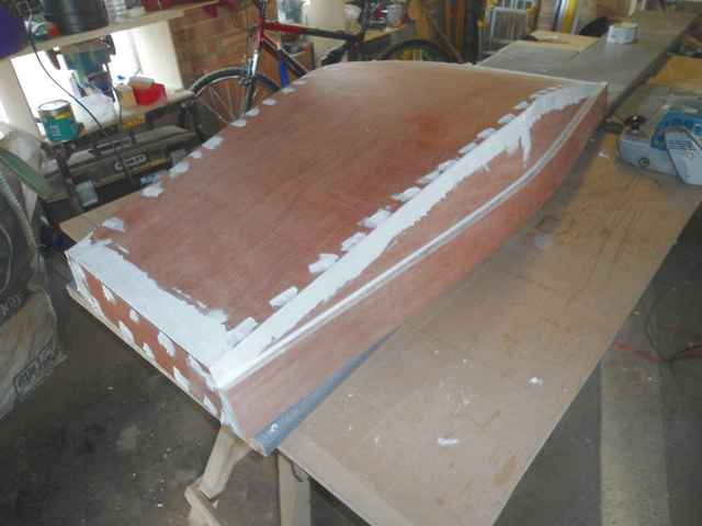 After being relegated to the garage, I got the boat on the operating table and gave it the once over with cascamite. This took 4 days to cure. I suppose you can use PU glue or any foaming glue but foaming glue pushes joints apart as it foams, not something I fancied happening in a boat.