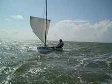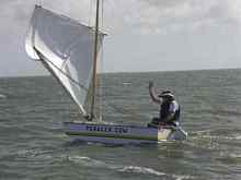 John H. Wright sailing his Puddle Duck Racer in the 2008 Texas 200 - Photo by Chuck Leinweber |