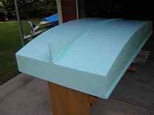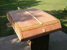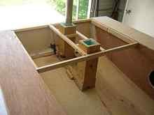 John G. Wight's Duck had two mast steps at the bow to aid in trimming the boat when using different sail rigs. I thought that was a good idea, so I installed two mast steps, and then attached the top plywood panels to the air compartment using PL adhesive. (I later removed the aft mast step to reduce weight since I wasn't using it.)