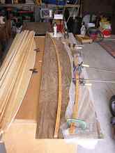 Photo shows the cured chine log and a second chine log attached to my nail jig. |