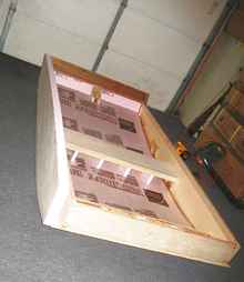 Webfoot  was made of Styrofoam and 2mm marine plywood. Even the seat and its supports were mostly foam covered with thin plywood. In this photo, the foam sides are temporarily attached.