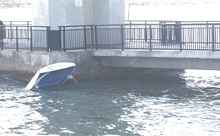 The Z caught a corner on a wave, pitchpoled, and was dismasted. Froggie lost his shirt, wallet, and Sailor Jerry. In spite of our efforts to save her, the Z ended her day wedged under the Hutchison Island Causeway getting  battered against this piling’s barnacles.
