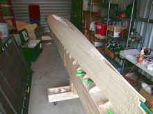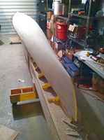The roughing process began with a Surform Shaver and a very heavy grit (50) fairing board.