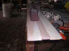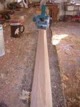 Sometimes, despite your best efforts, the oar will not be perfectly straight. The 21' steering oar took a notion to bend and "hurt my feelings", as a guy i knew used to say (P50).