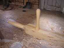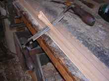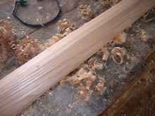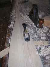 Now comes the noisy bit. I like to use a draw knife (P26a) if the grain is good, but this ash is quite wild and it is easier to do it with a power planer (P26).