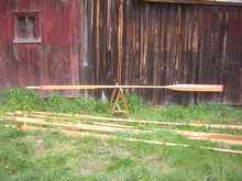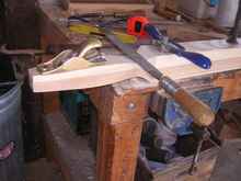 Here is a photo of the first two 15" oars. Next to them are two 8/4 pieces of ash that will make another oar (P45). |
