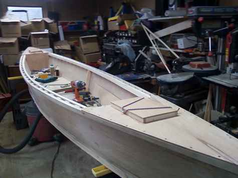 Here are a couple of pics of my Caprice progress. I'm hoping to be ready to flip sometime in April. Thanks to Max's book I'll be powering it with a classic 10 hp '58 Evinrude, and the sails from a Polysails kit. The cabin is a little taller (3" if I remember right) than the plans specify because I couldn't bring myself to cut off the excess plywood. So I'll see how much some extra headroom costs me in windage.