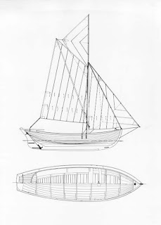 After much head-scratching, I settled on the spritsail with a flying jib (i.e. a headsail not hanked onto a stay), having been influenced by the writing of a number of people, of whom Phil Bolger was the most influential.