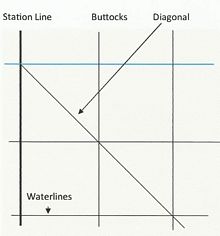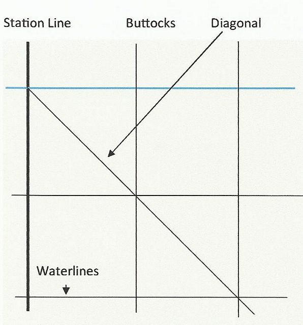 And with the diagonals, the Old School practice was to begin the diagonals on an intersection of the body plan centerline and a waterline. The diagonal always ended on an intersection of a waterline and buttock in the profile view. However, nowadays a designer might not show that on his plans. He might simply specify an angle for the diagonal.