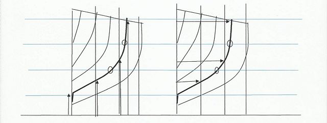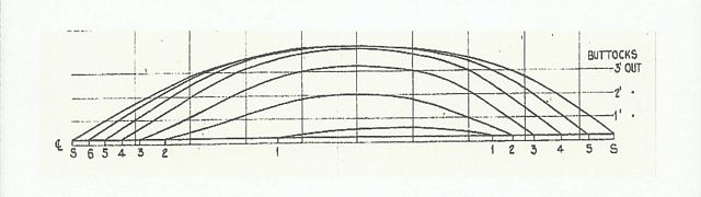 Then comes the buttocks. If the boat you are lofting is lapstrake or cold-molded or carvel, I think buttocks are significant enough to make the line thick, so it will stand out.