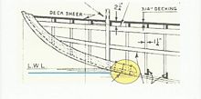 line that I didn't show it. All of these lines will be in the offsets. The two most critical areas here are the first joint and the stem/keel area. The keel thickness must be enough to take pounding since so many designers insist on putting the first joint so near or under the waterline.